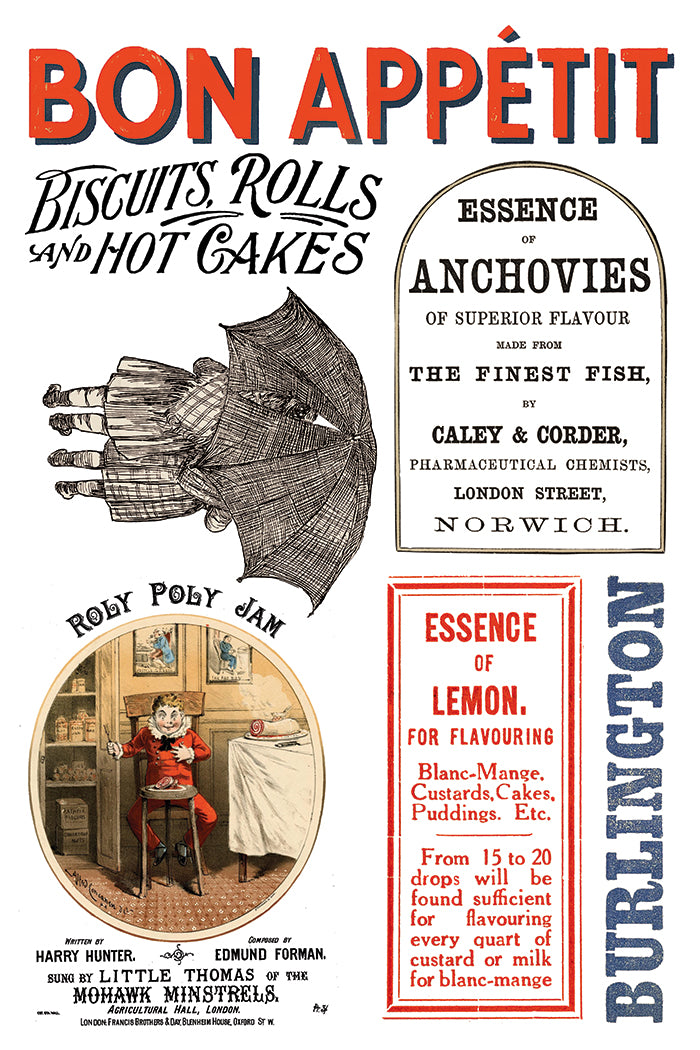 Home Sweet Home is gushing with vintage goodness from the mischievous little “greedy boy” reaching for that roly poly pudding (yep, that’s a real vintage ad!) to the intricate Imperial Granum label. It’s essentially like rummaging through an early 1900s pantry in the best way possible.