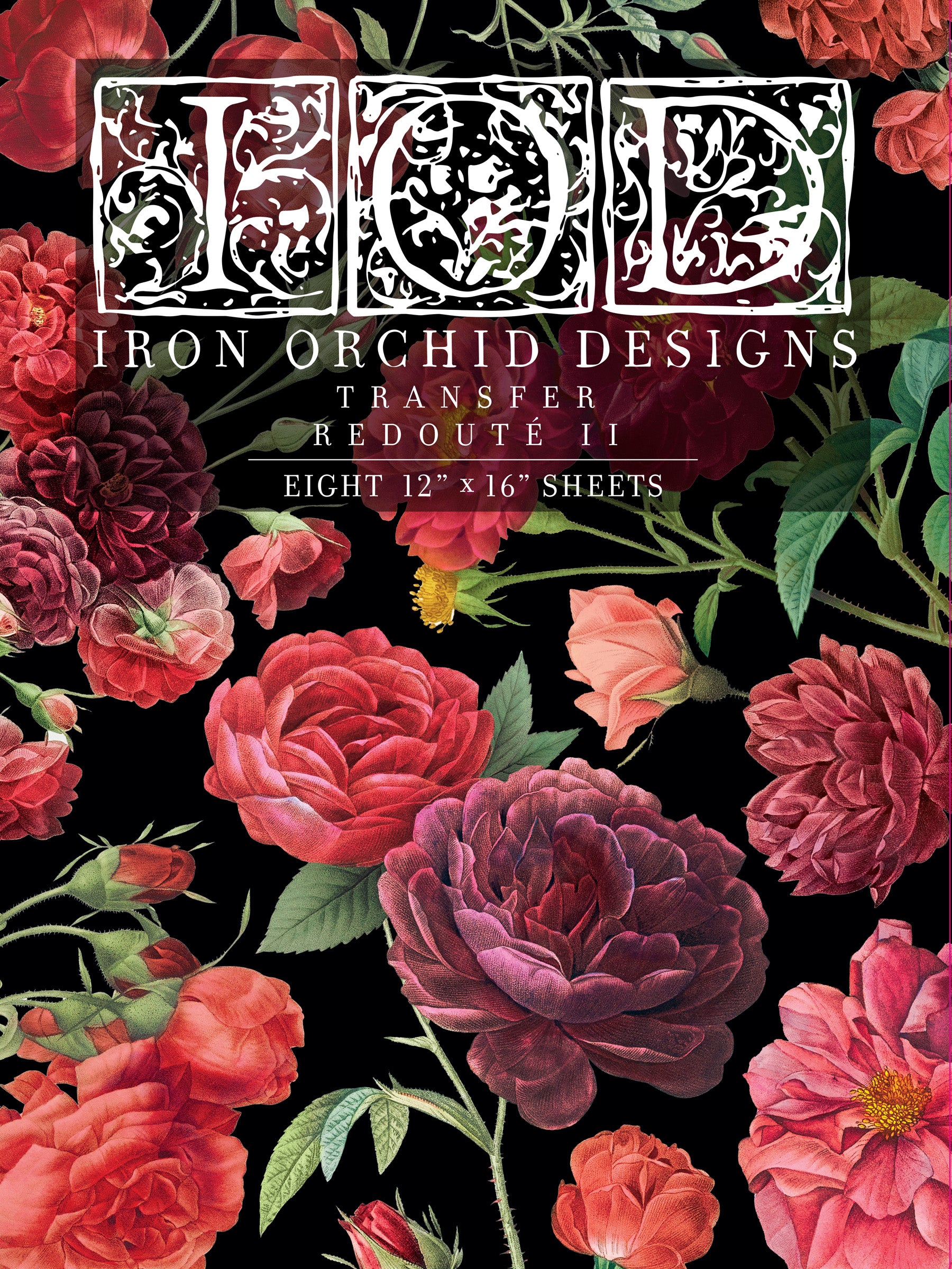 IOD Decor Transfer Redoute II comes with 8 sheets and the images are designed to be cut apart, layered, and arranged however you like. This transfer is perfect for creating bouquets throughout your DIY home decor. The pad format makes it easy and efficient to store transfer pieces on their non-stick backings.