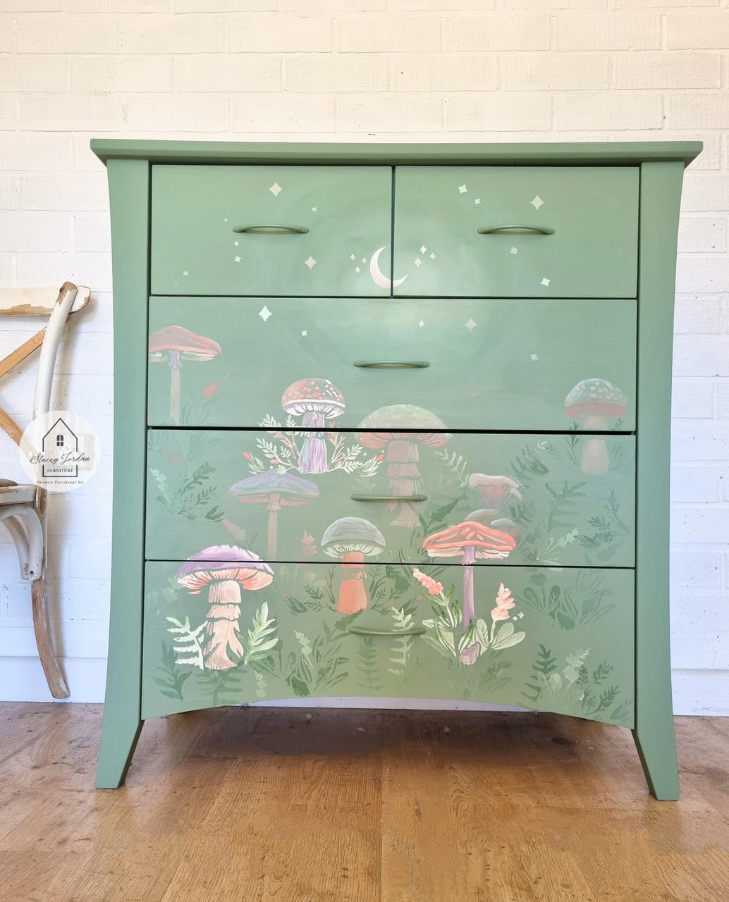 Embrace the Cottagecore trend with these charming mushrooms and create a whimsical, moonlit ambiance in your projects. Amplify the magic with a dimensional effect using Dixie Belle Mud. Dive into the mushroom craze with our Moonlit Mushrooms Stencils and elevate your creativity to a whole new level. Perfect for those enchanted by the Cottagecore aesthetic!