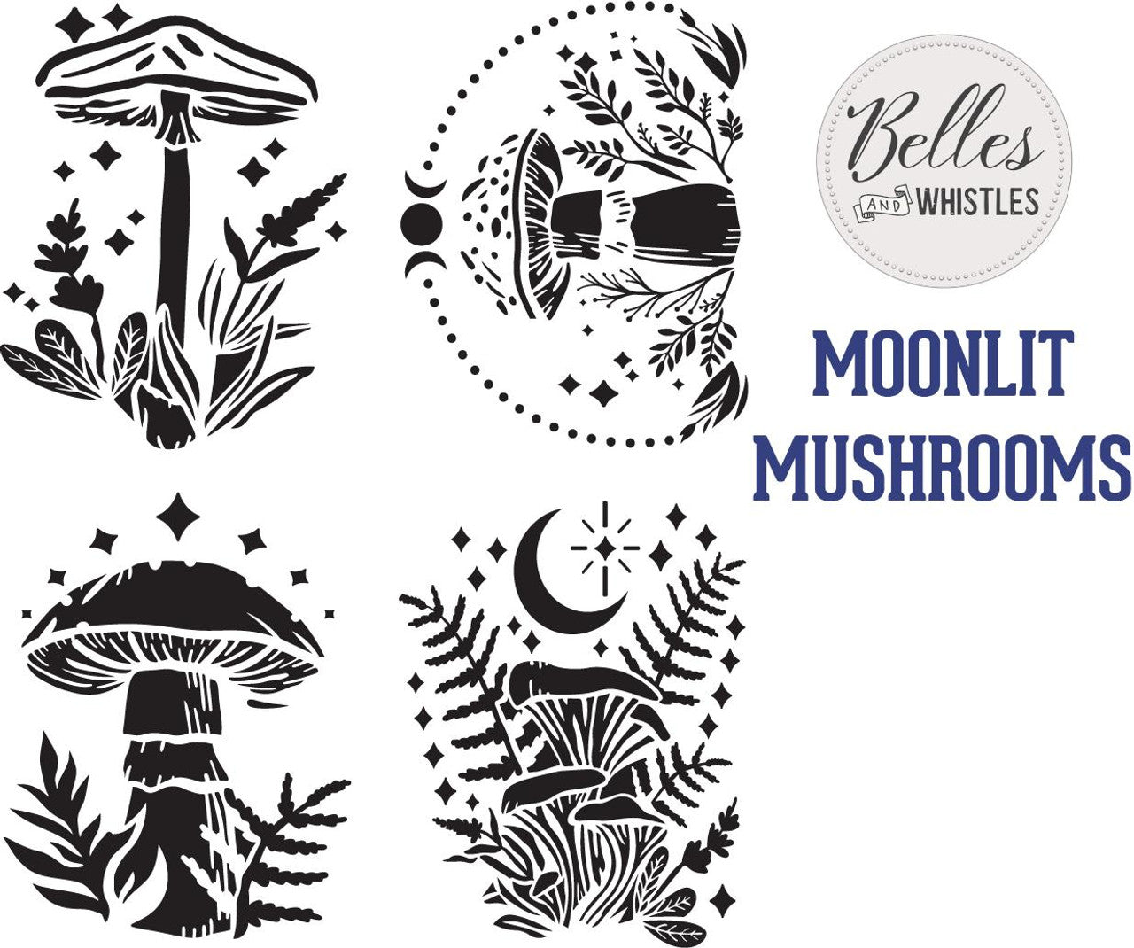 Introducing our Moonlit Mushrooms Stencil Set, featuring 4 trendy and adorable mushroom designs, each measuring 7x9 inches. Crafted with top-quality 10 mils mylar for reusability, ideal for chalk paint furniture, scrapbooking, crafts, and more.