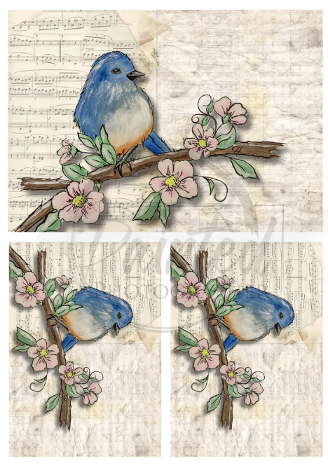 Printed on Rice Paper for Decoupage and/or framing. Images are printed on rice paper that has small fibers; this will not alter the image but give it more handmade character. Image will not smear when using a water based sealer. Some bubbles will appear when wet, they should flatten back out when dry, use plastic wrap to avoid tearing. To best flatten paper, use a brayer to press into the sealer.