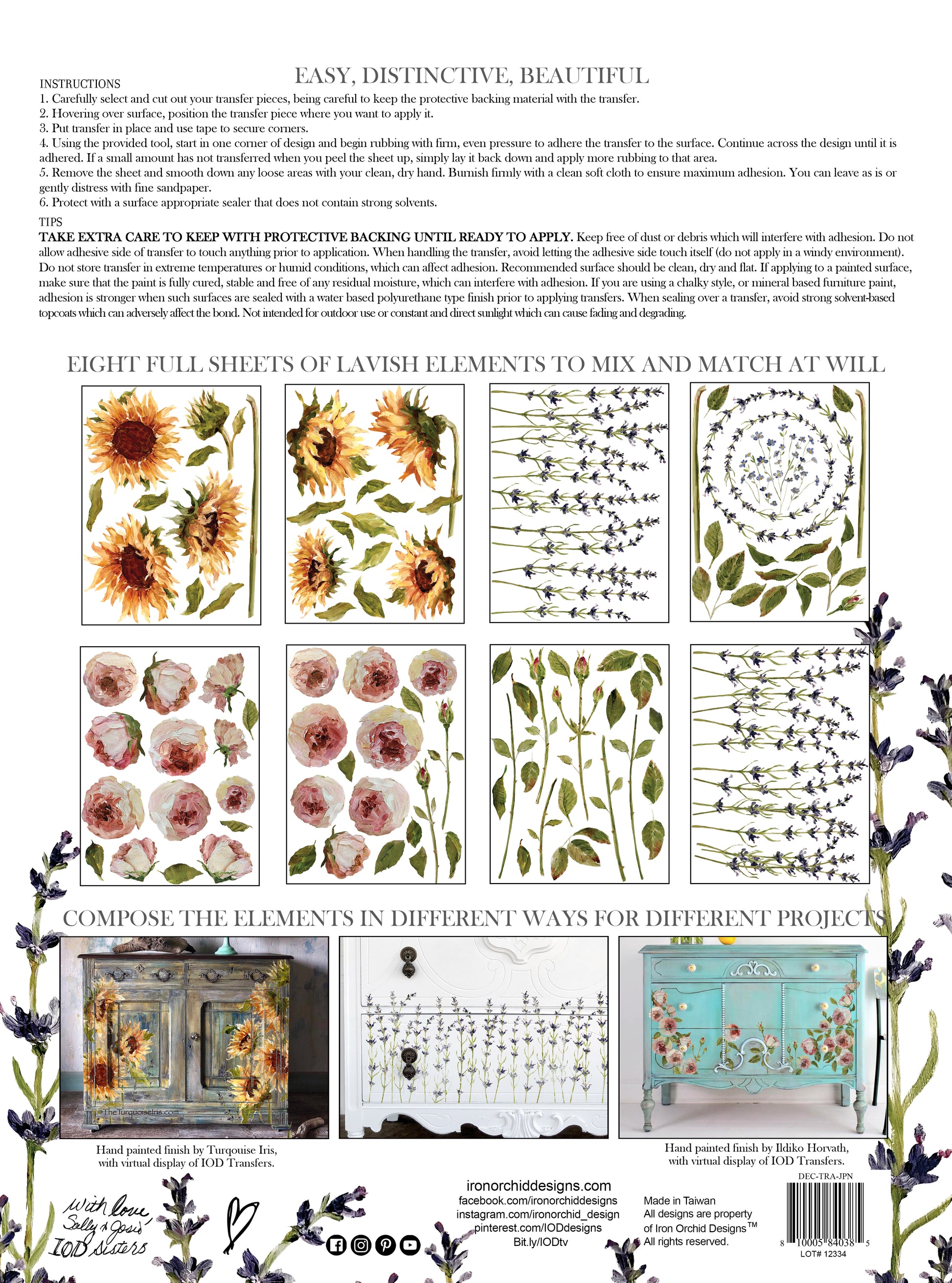 Iron Orchid Designs transfers are easy to use and come in a flat pack with a rub on tool. Perfect for decor and furniture.