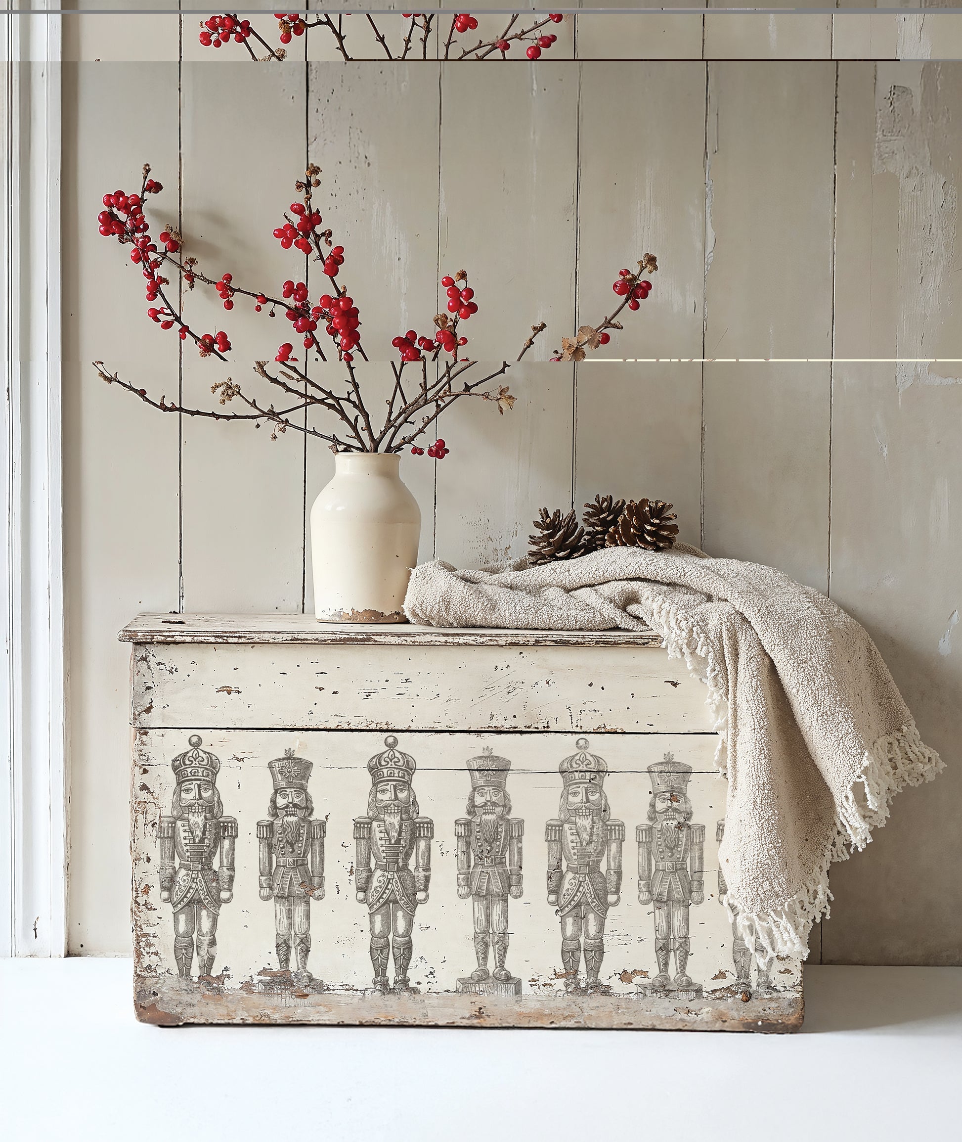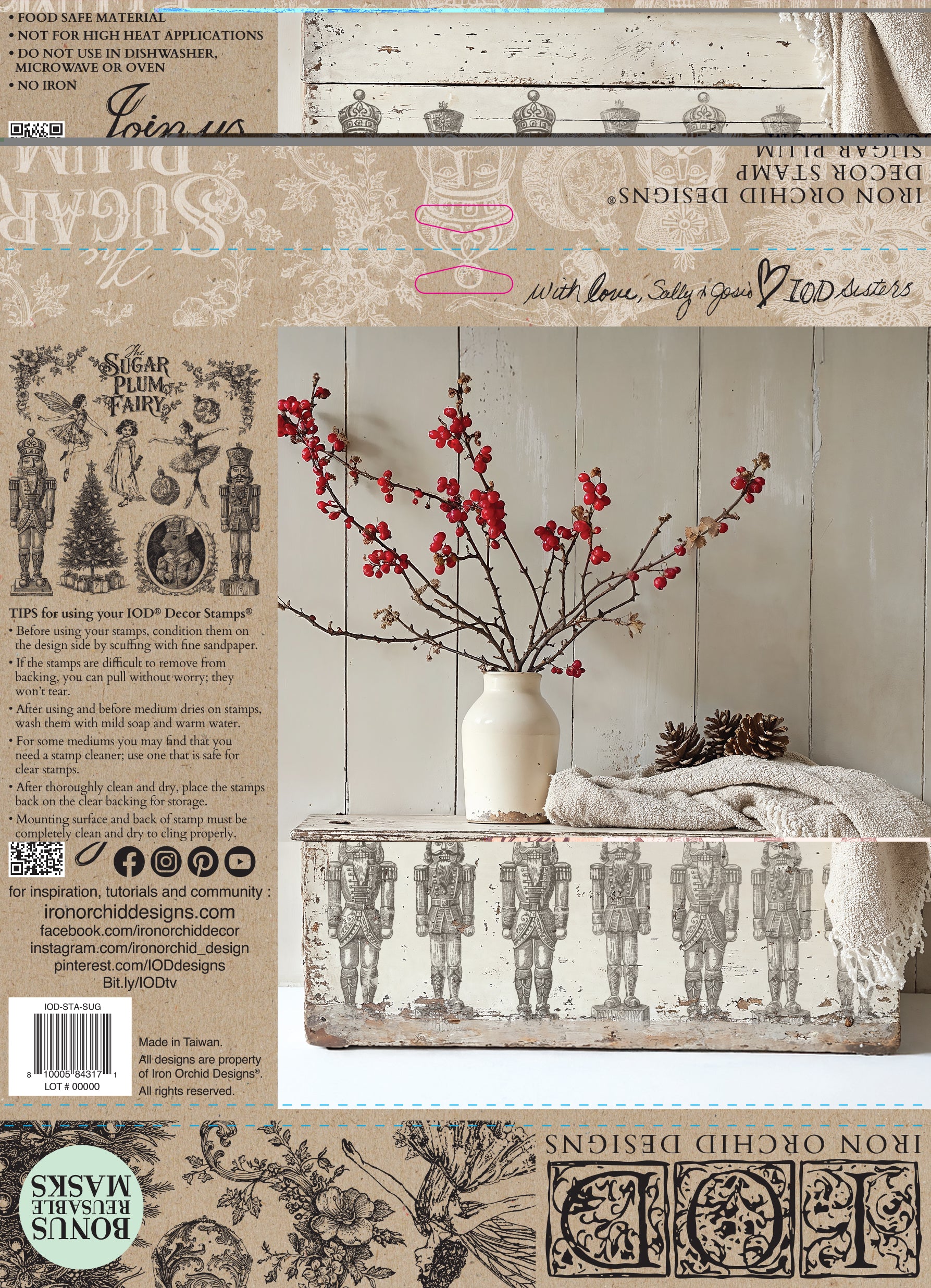Picture nutcrackers stamped onto thrifted ceramic bells and hung from a mantle draped with garland, or a set of tea towels stamped with sweet holiday motifs and wrapped up as a thoughtful handmade gift. Alternate fairies and nutcrackers across a canvas pillow or pair Sugar Plum with sentiments from Christmas Joy.