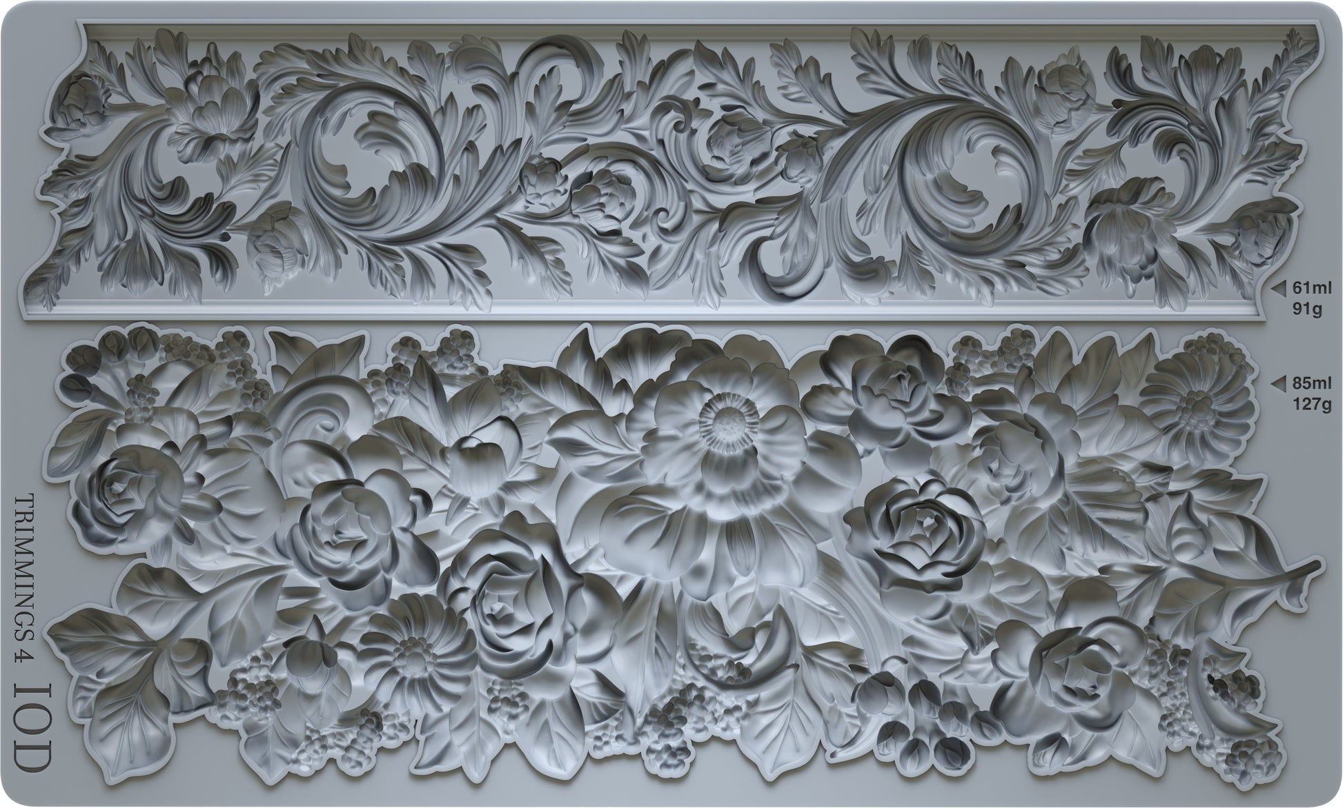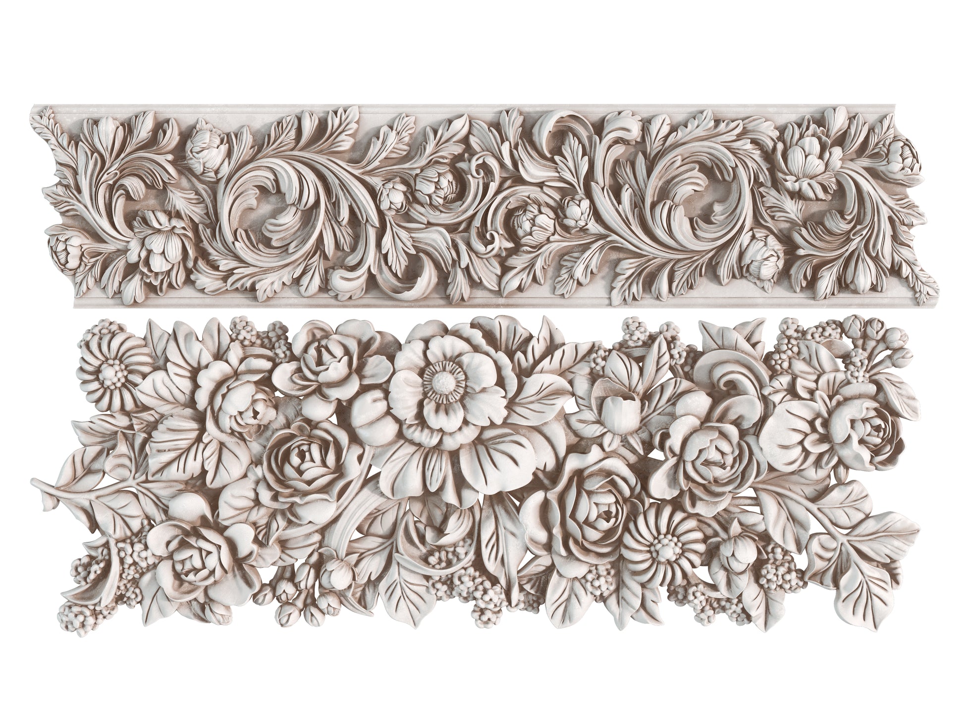 You guys…we’re so excited to introduce the latest in our Trimmings series, Trimmings 4. Inspired by the gorgeous details of vintage English Renaissance architecture, one trim is rich with intricate floral elements while the other showcases graceful, sweeping flourishes—both designed to create seamless, continual patterns.