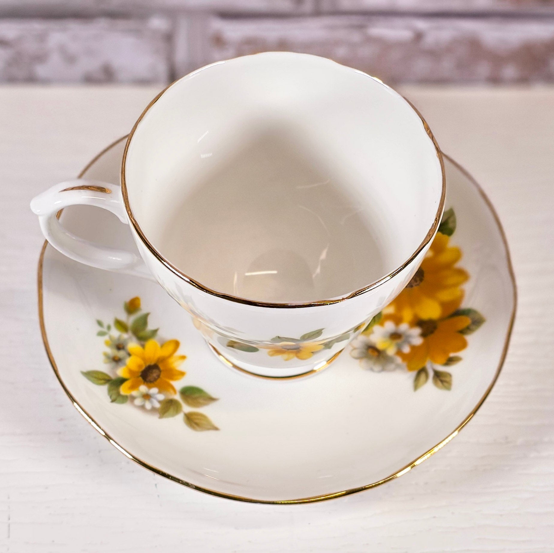 Vintage Duchess Bone China Teacup and Saucer – England – Yellow Floral – Cottage Tea Set