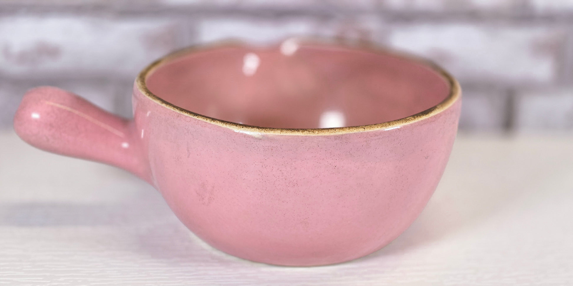 Vintage Hall Pottery Pink Soup Bowl with Handle